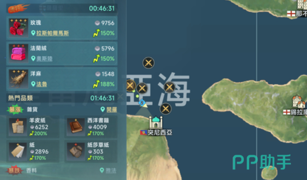 除了完成海事挑战之外,游戏里玩家还需要进入到各个港口中,然后,在这里通过低价买入,去其他港口高价售出的方式,获得一些资金,最好是先去查看每一个区域中比较热门的商品,这样才能避免商品价格的下滑,造成货品积压或者是亏损。