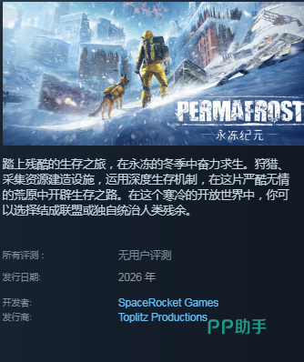 2026年备受期待的开放世界生存新作《永冻纪元》已确认将于该年度正式发售,具体上线月份与日期尚未官宣。作为一款以废土末日为背景的高自由度生存游戏,其宏大的世界观构建、动态环境系统以及深度资源管理机制,正吸引大量硬核玩家持续关注。
