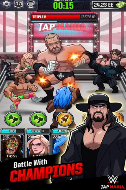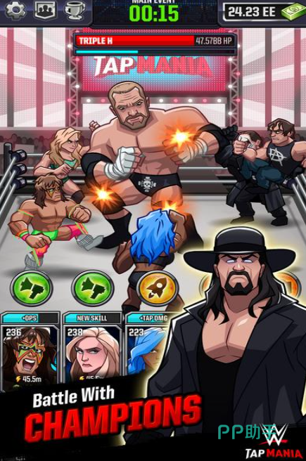 作为一款点击类摔角类型的游戏,玩家需要在体验游戏时不断地点击屏幕,这样就能够发动攻击,也能够形成防御,并且还会跟wwe巨星进行pk。由于整个游戏的操作特别的简单,角色选择却具备多样性,游戏的模式也比较多。玩家在体验游戏时可以轻松上手,并且能够享受到较多的摔角乐趣。