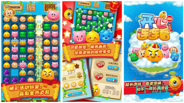 如果想要体验喜气洋洋的新年氛围游戏,那么各位一定不要错过这款《开心连连看HD新春版》游戏。它以各种憨态可掬的小黄金、生肖萌猪趣猴等图案,作为大家的消除图标,搭配上华丽生动的爆炸效果,令各位可以在游戏之中感受到极致欢快喜悦的游戏体验。游戏玩法依旧延续的是三消基础模式,操作简单却趣味多多。