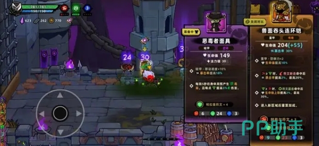不过游戏当中大家可以尝试各种独特的搭配组合,例如大家可以尝试红符文加持下的火刀盾、绿符文渗透的毒双刀,甚至是冰雷属性的武器,尽管个人认为冰属性更适合法杖施展,而雷属性可能需要频繁走位来触发效果,混搭不同风格的装备和技能,不断探索新的战术思路,比如面具跟铠甲也是可以搭配的,这正是肉鸽类游戏的核心乐趣所在,进入游戏初期,首要任务自然是尽快提升角色的整体实力。