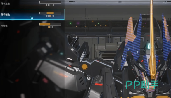 方法还是一样找到指定部位即可,在改好后在去更换点缀色,这点缀色也就是眼睛等细节部位的颜色,在完成了点缀色的更改后,大家就可以得到一台属于自己的独一无二的鸣神机体了。