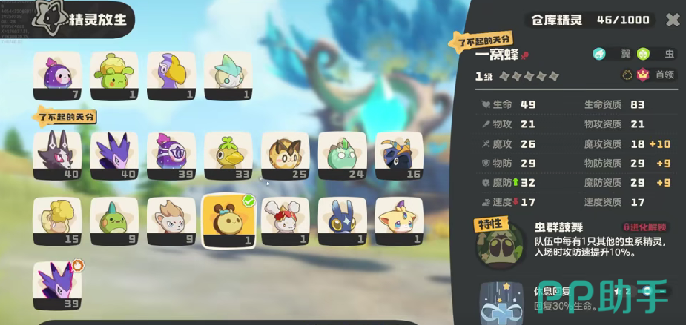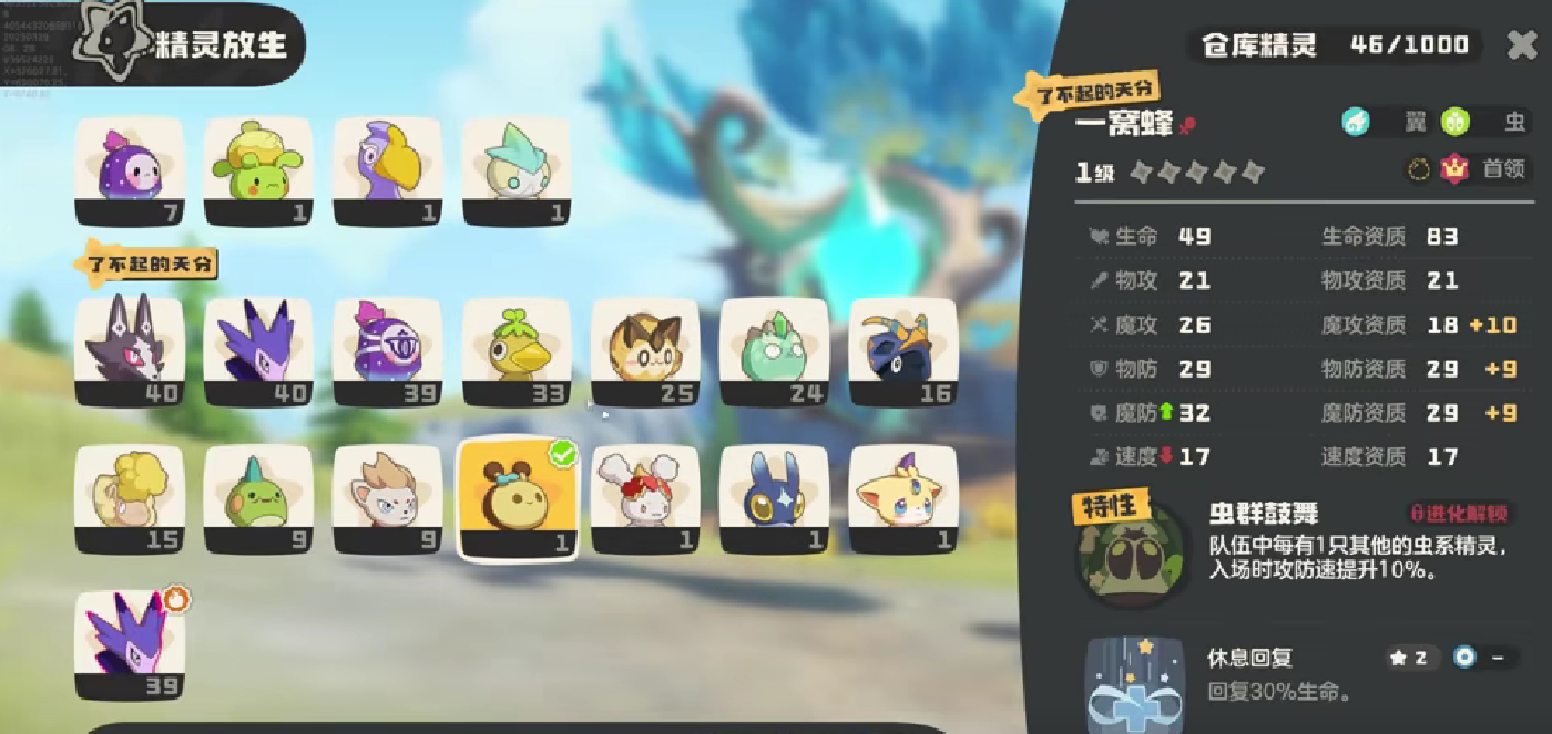 玩家如果获得了较多的精灵,也可以不断的对这些精灵进行整理,排序,甚至在精灵仓库当中也能够快速的定位。只是玩家需要注意仓库的容量是有限的,玩家在存放精灵的时候要规划。