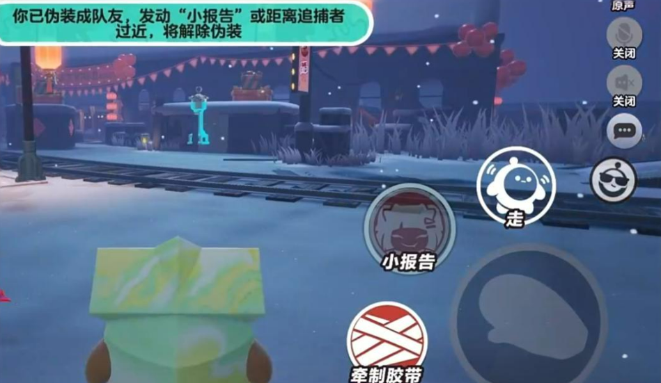 另一关键技能“牵制胶带”为指向型控制技:投掷胶带卷后需围绕追捕者逆时针绕行以填充缠绕进度条。成功命中后触发多段减速,且后续减速幅度随缠绕层数叠加递增。该技能无硬直判定,但绕行路径易受地形与敌方位移干扰,建议配合墙体卡位或队友视野遮蔽使用。