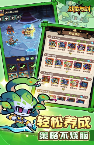 作为一款融合深度策略与轻量化挂机机制的作品,《战歌与剑》在节奏把控上做了精准平衡。玩家无需每日高强度在线,离线期间英雄仍可持续战斗、自动产出金币、经验与材料;上线后一键收取即可完成资源积累。游戏以英雄收集与技能搭配为核心,目前已实装超百位角色,每位均拥有独立技能体系与成长路径,支持自由编队与多维培养。