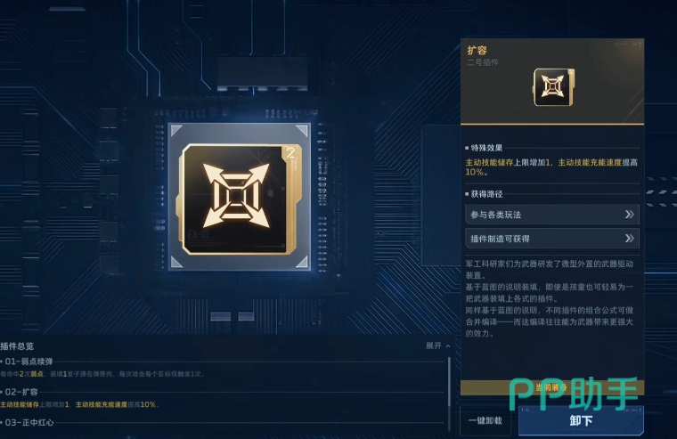 第二插件需按战术定位二选一:若追求高频技能循环与瞬时压制力,推荐【多重激返】,可大幅缩短主动技能冷却;若侧重容错率与节奏掌控,则选择【扩容】,实现主动技能储存量翻倍(达2次),便于在关键节点灵活释放,提升BOSS战与复杂地形下的操作自由度。
