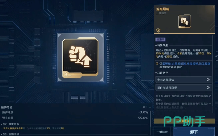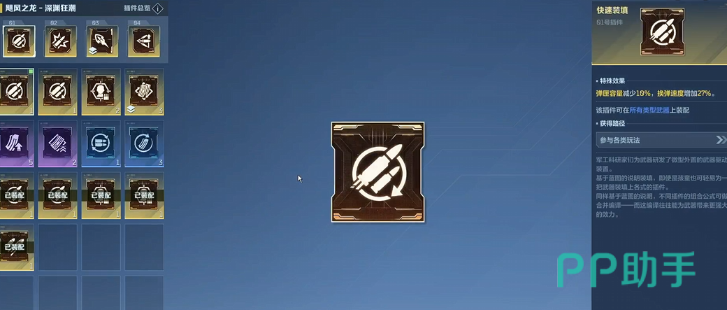第一插件优先锁定【超载弹夹】——该插件与飓风之锤的被动技能深度联动,显著延长连续作战时间,有效缓解换弹压力,在高强度对战或连场挑战中保障输出稳定性。