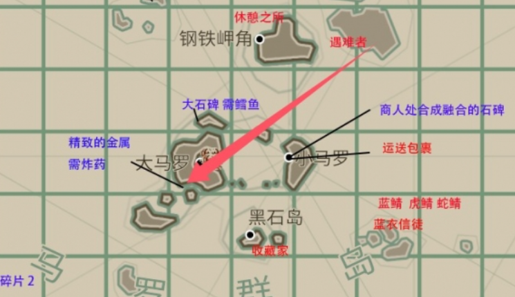 游戏内存在着多个识别,因此任务也是比较丰富的,首先小伙伴们可以先前往马罗群岛,并且在小编地图里面标注的这个位置中寻找到石碑。想要完成治理的任务,身上需要携带5条鳕鱼,因此小伙伴们最好在出发之前提前确认一下再完成任务,并且提交鳕鱼之后可以获得筋线轴。如果小伙伴们此时正处于游戏的前期,但是觉得手中的钓具不太够用的话,可以尝试着来获得一下筋线轴。