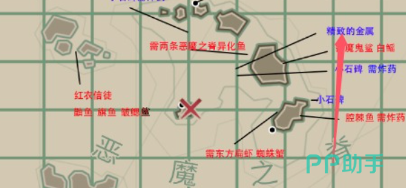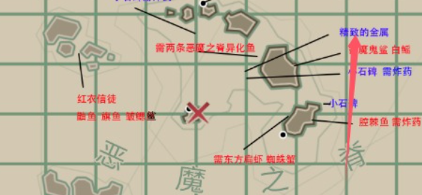 第3个石碑的位置在斯特拉尔湾,详细的坐标和需要携带的道具小编已经在图片里标注出来了,小伙伴们在准备齐全之后直接前往即可。完成这里的识别任务之后,小伙伴们可以获得肉色起重机。如果你想钓到大鱼,尤其是在海峡或者深沟这种地区,那么肉色起重机就是必不可少的,是一件非常有用的装备。