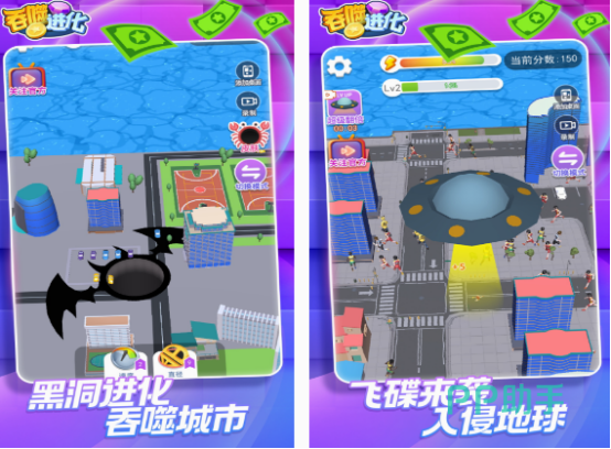 这款名字叫做吞噬进化的游戏,它是以黑洞进化为主的,需要你在城市的环境当中,为了扩大黑洞来通调一切事物,包括游戏中所设置的小人,以及城市中的建筑物等各种设施。面对黑洞不断进化的过程中,吞掉的东西越多,黑洞的体积也会变得越大,最终能将整个城市吞噬掉。还要在整个玩的过程中,发挥自己的速度,因为它有时间限制。