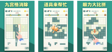 在九宫格中开始一次次的小游戏进行通关,从消消乐再到找不同,每一个关卡都会给你带来不一样的惊喜。在闯关过程中你还能够随意选择不同的道具开始游戏,例如时间延长以及提示道具等等可以帮助你更快完成所有任务。休闲且轻松的玩法搭配静谧的环境让你深深沉浸其中,在简单的九宫格中不断提升自己的专注力。