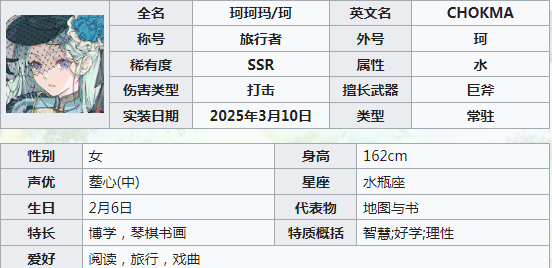 在《开放空间》手游中,珂这就是一个水属性常驻类型的角色,称号是旅行者。生日是2月6号,主要的爱好是阅读,还有戏曲。开放空间珂是不是一个厉害的角色呢?如果对这一个内容感兴趣,玩家就可以分析一下以下的内容,看一下这是一个什么样的角色。