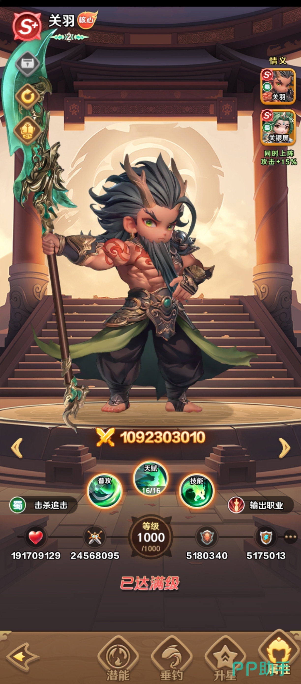 关羽是当前版本单体压制能力最强的武将之一。其普攻消耗自身10%最大生命值,同时对目标造成高额伤害,并附带“禁怒”效果,直接封锁敌方关键技能释放节奏。当天赋强化后,追击触发频率与伤害倍率显著提升。在持续作战中,他不仅能通过击杀回血维持生存,更可凭借高频打断与稳定追击,在PVP及高难度Boss战中持续施加高压输出压力,是破阵与斩杀环节的核心执行者。