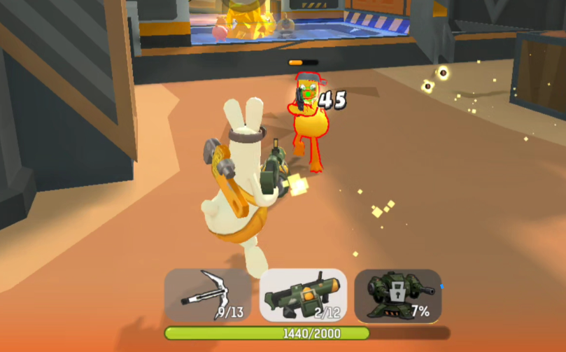 工程兔属于纯远程布防型角色,拥有两个关键技能:普通技能“兔突机枪”可在指定位置部署一台全自动机枪塔,进入射程的敌方单位将被持续锁定并扫射,无需玩家手动瞄准;终极技能“兔击导弹”则生成一座追踪炮台,每秒发射一枚制导导弹,对命中的目标及其周围半径内敌人造成群体伤害(AOE)。两项技能均具备完全自主索敌逻辑,显著降低操作门槛,同时提升战场覆盖效率。