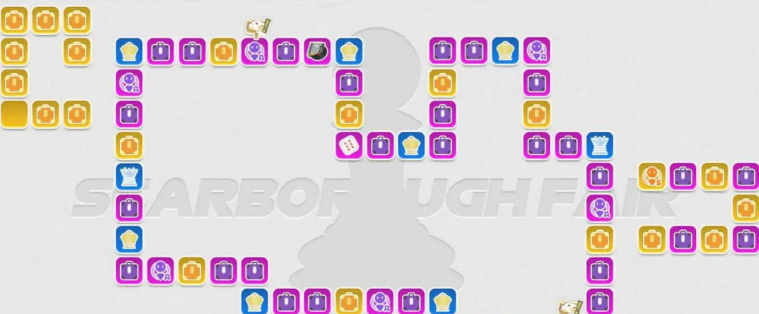 在斯卡布罗集市中,玩家消耗特定资源进行骰子投掷,控制棋子沿预设路径行进。棋盘由多种功能格组成:抵达角色格可直接获得对应角色;触发宝箱格则随机获取角色或武器。这种动态路径机制显著区别于传统固定次数的十连抽取,每一次掷骰都伴随不确定性,既强化了过程沉浸感,也使角色获取更具节奏变化——有时一步到位,有时需多轮推进才能抵达目标位置。