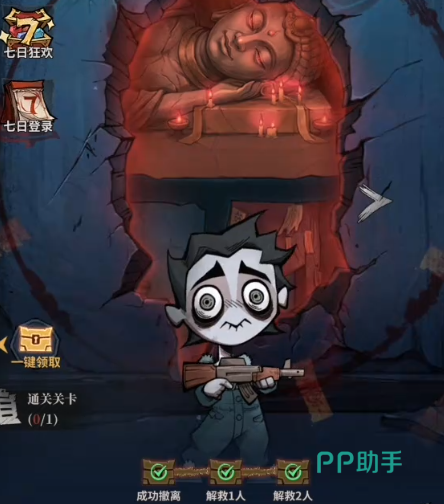 游戏开篇以一段沉浸式动画切入,随后引导玩家进入“轮回空间”,并开启教学关卡——轮回寺。该章节系统讲解移动、射击、拾取、交互等核心操作逻辑,整体上手门槛适中,完成本关即可掌握基础战斗框架。教学结束后,角色将被空中悬浮的棺材吸入,正式抵达主界面。初始装备为一把自动步枪,该武器具备独立强化机制,升级所需材料为钞票与武器碎片。