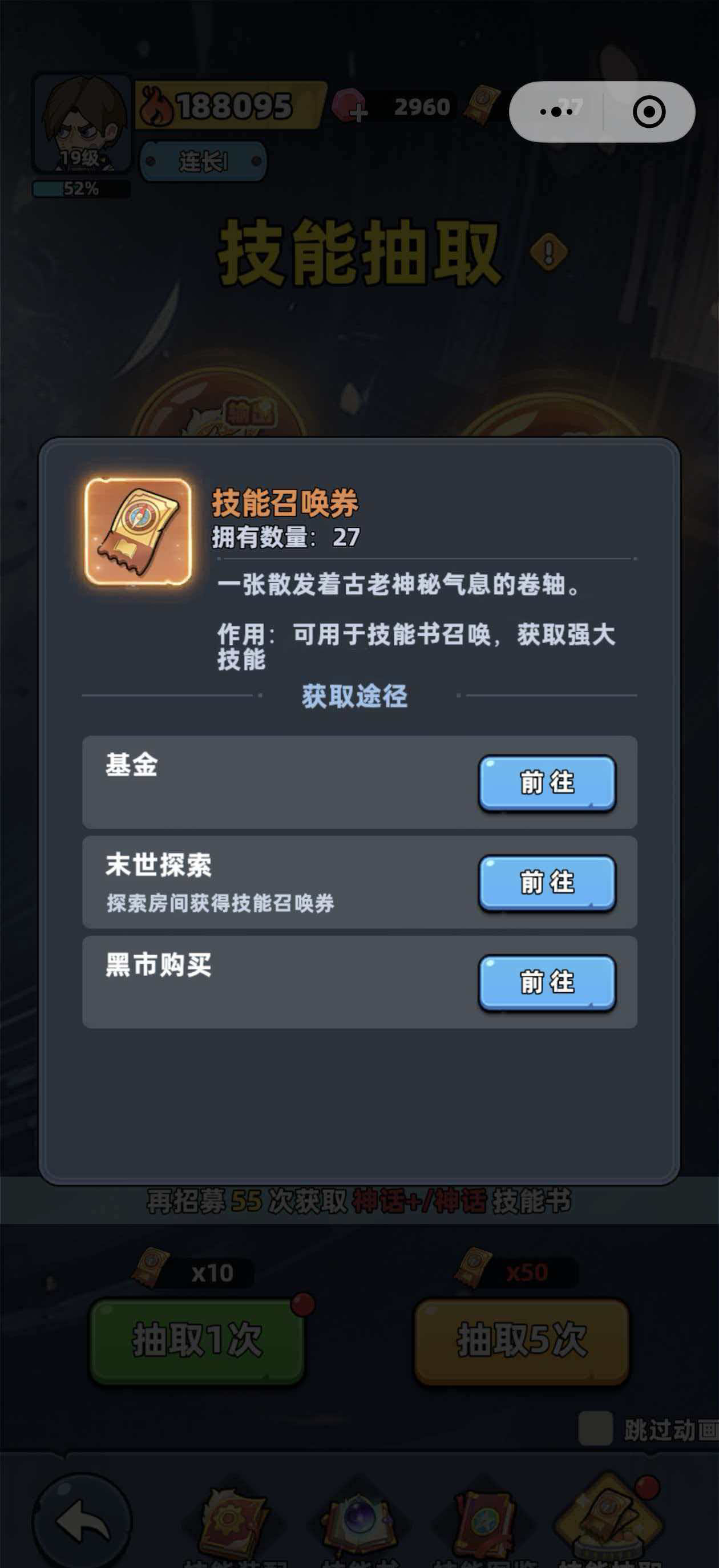 技能书并非随等级自动开放,需满足特定机制方可解锁。当前版本中,主要获取方式为两种:召唤抽取与场景探索。其中,“技能召唤券”是开启高级技能书概率池的关键道具,属于限定类资源。该券可通过三项常规途径稳定获取:技能书基金活动、末世探索任务链、以及黑市限时兑换。前两者门槛较低,适合长期积累;黑市则作为应急补充渠道,资源投放具有周期性与随机性。