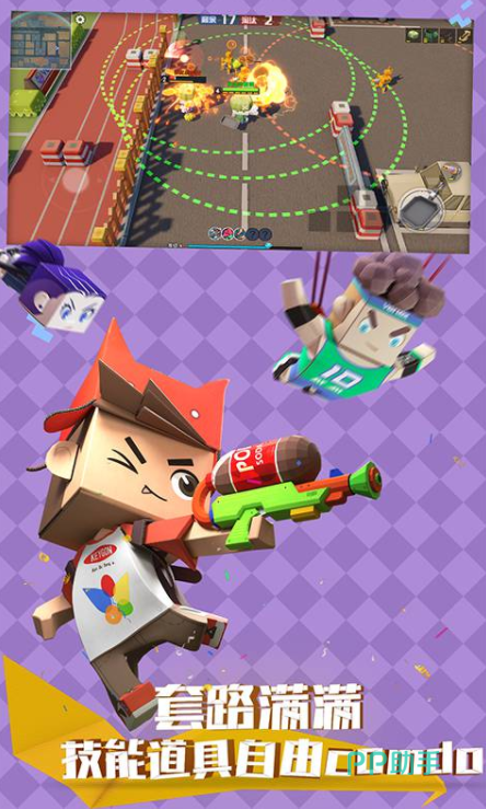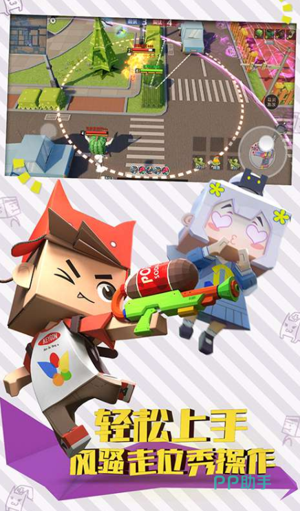 该游戏采用别具一格的纸模美术风格,所有角色均以立体纸盒形象呈现,视觉上新颖独特。尽管初始造型看似简单,但玩家可在多个个性鲜明的角色中进行选择,并通过自定义改装系统打造专属外观。操控这些可爱的纸盒战士,进入开放战场搜寻敌人,游戏采用2.5D俯视角战斗机制,每位玩家都能使用多样武器与其他对手展开激烈混战。