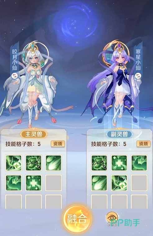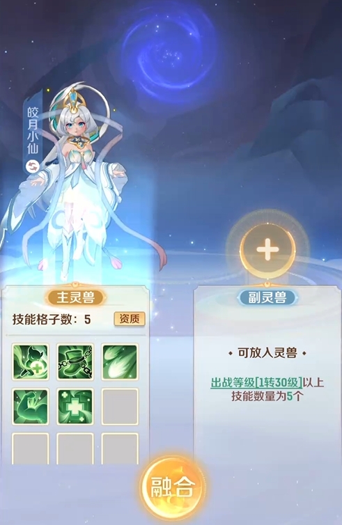 合宠功能位于宠物界面的“附灵”模块中。玩家需指定一只主灵兽(即目标保留单位)与一只副灵兽(即消耗型胚子)。主灵兽在合成后继续存在,其原有技能与部分属性将被保留;副灵兽则永久消失,仅作为技能来源参与继承——其携带的技能将以概率形式转移至主灵兽身上。需特别注意:技能继承完全随机,无法预设或锁定具体技能;且存在继承失败或技能总数减少的可能。因此,建议玩家储备多只同类型副灵兽,通过批量尝试提升获取理想技能组合的成功率。