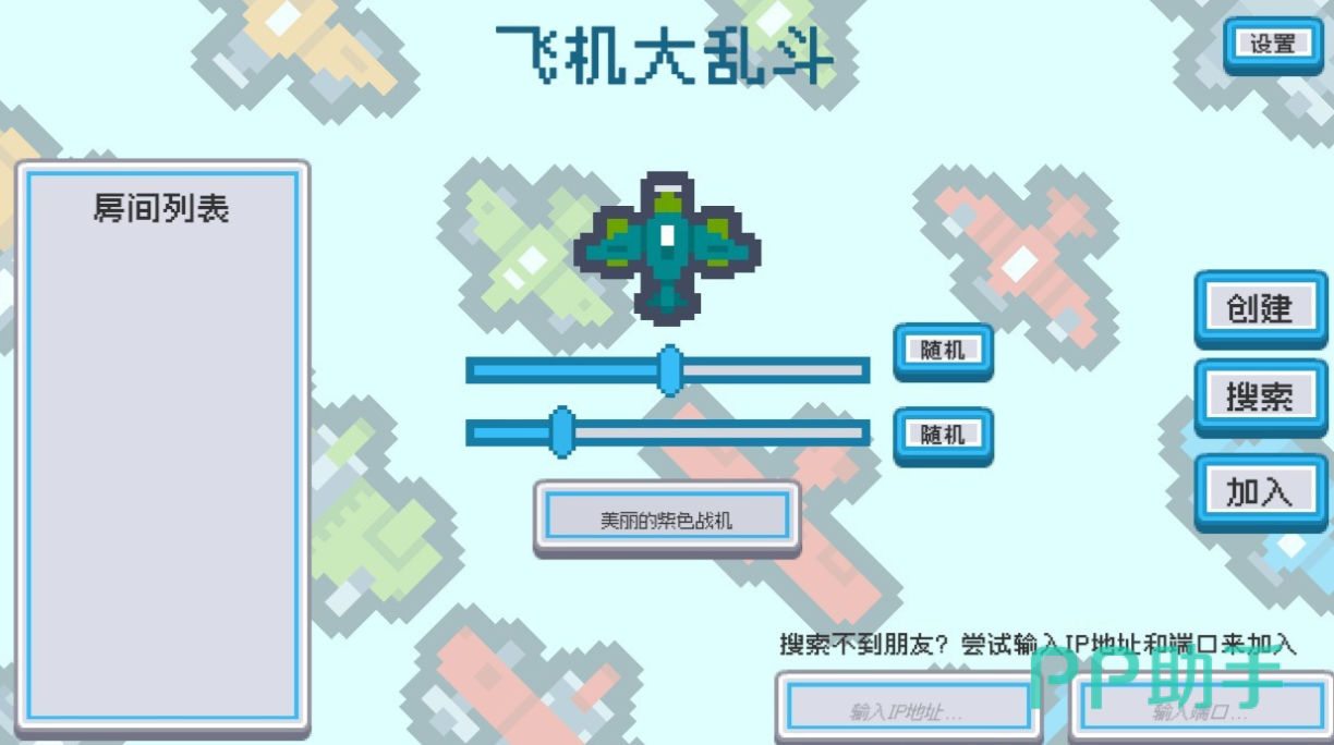 这是拥有像素画风和上帝视角的一款乱斗游戏,飞机驾驶与大乱斗的空战玩法快感十足,可随意生成自己专属的飞机参与战斗,最多支持八人驾驭小飞机进行混战,酷炫的空战画面加上粒子特效展现都令人沉浸,亦可自定义开创房间跟好友联机竞技,像素可爱的飞机与简化的美术UI观赏性不错,进入像素空战世界自由战斗会获得无限的快感。