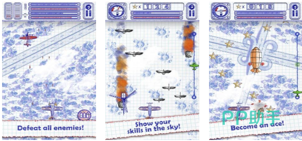 本作是拥有涂鸦风格背景的飞行射击类佳作,简约的涂鸦美术表现让游戏的观赏性大增,涂鸦造型的各类飞机看上去也比较可爱,双翼飞机与飞行射击类的玩法做到交相融合,操作方面灵活且通关速度快令人直呼过瘾,飞机的轰鸣声结合精致爆炸特效视听效果惊艳,在涂鸦的世界中驾驭飞机战斗也较为爽快。
