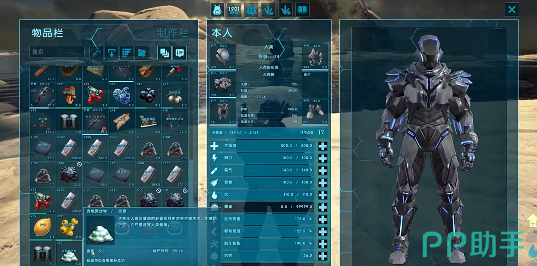 生物击杀是最直接的前期获取方式。企鹅(Penguin)分布广泛、血量极低(仅约50点生命值),使用任意近战武器(如木棒、石镐)即可快速击倒,单只掉落1–3单位有机聚合物,刷取效率高,适合 solo 玩家在雪地或海岸区域集中清理。螳螂(Mantis)则提供最高单次掉落量——死亡后使用电锯切割尸体可稳定获得8–12单位有机聚合物,但其生命值达1200点以上,且多刷新于火山地热区与沙漠边缘地带,建议组队配合远程压制与高攻速近战协同输出,以降低战斗风险。此外,巨蟹怪(Giant Crab)、死亡沙虫(Deathworm)及黄昏鸟(Argentavis)等大型生物亦有概率掉落1–5单位有机聚合物,可作为顺路补充来源。