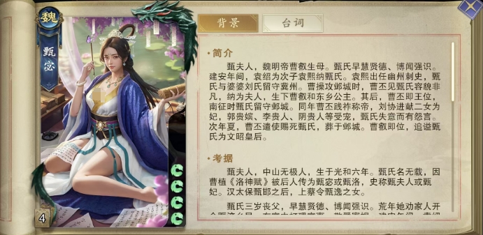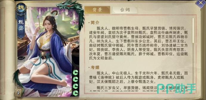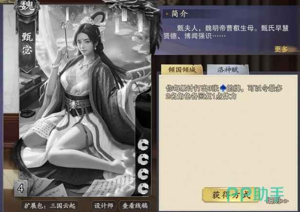 在代号杀的战场上,甄宓的实用技能其实主要在多人模式当中会比较有用处,她也凭借这些技能成为了众多玩家心中的辅助佳选,代号杀甄宓有哪些技能是大家可以从本期介绍中熟悉的,游戏中的甄宓,以甄夫人的身份登场,虽然初始体力仅有4点,但其所拥有的的技能还是很突出辅助卡这一特点的。