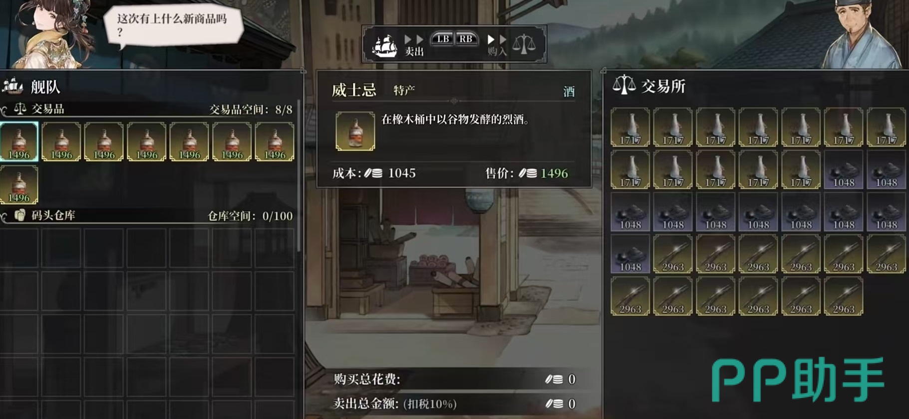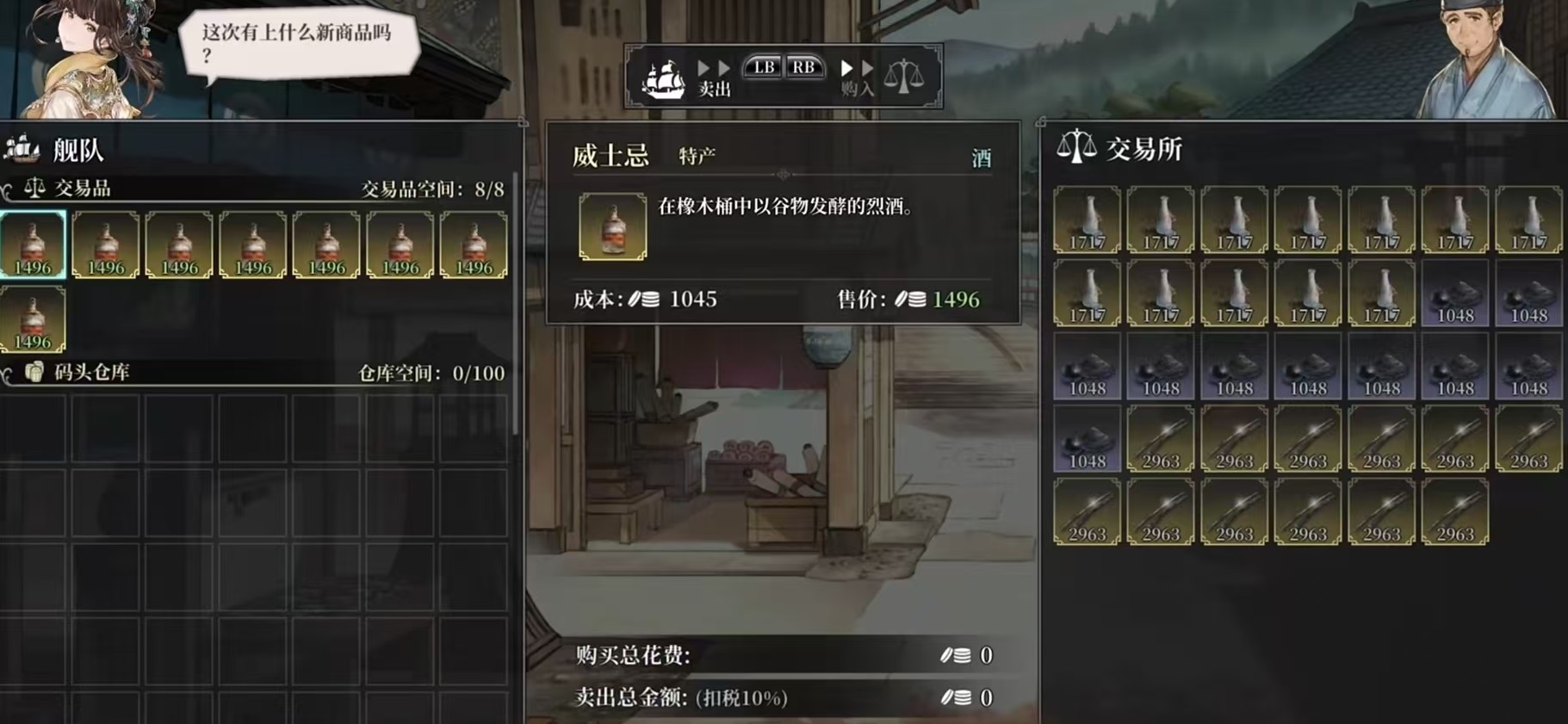 交易所界面支持实时切换“买入价/卖出价”显示模式,并可查看当前商品的溢价率(正负百分比)。由于各港口资源禀赋不同,其收购价与特产清单存在明显差异:里斯本常有高溢价的羊毛与铁器,马六甲则盛产胡椒与丁香,而广州口岸则稳定供应生丝与瓷器。确认交易后,系统将弹出结算面板——其中“买入花费”仅计入本地采购成本;“卖出收入”则为售价总额,利润即由两地价差扣除运输损耗与固定成本后得出。每次成功交易除获得金币外,还将同步增加角色经验与该城市贡献值。需特别注意:所有出售行为均需缴纳交易税,税额随单笔金额递增;当玩家在该港口的影响力达到指定阈值后,可向官府提交免税申请,大幅优化长期贸易收益。