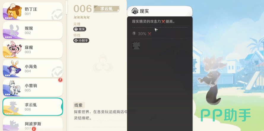 除了战斗中的表现外,求云虬还拥有独特的冒险技能,在探索类玩法中也能发挥作用。这意味着无论是在主线推进还是地图探索阶段,该精灵都能提供一定的属性加成或效率提升。由于获取途径较为稀有,整体强度设计上也相对较高。值得注意的是,求云虬是当前版本中唯一归属于“现实元理”类型的精灵单位。