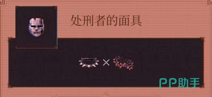 处刑者面具:由荆棘之冠+尖刺项圈合成,敌人首次发现玩家时有10%概率直接死亡,适用于强调先手压制的战术风格;