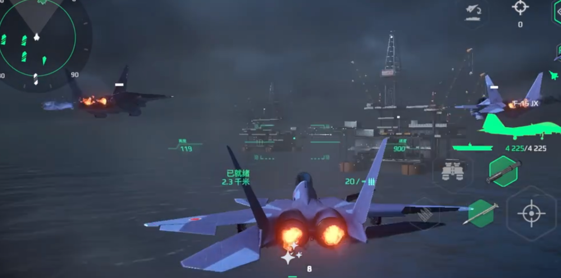 接下家就是关于F15jx的点灯测试,不过想要准确知道点灯距离是有点不太可能得。因为中队三架飞机,加上有地图,布局以及战舰等因素的影响,想要知道详细的点灯数据确实比较困难。不过也能知道大致的范围,F15jx的最远点灯距离大致范围在4.2到4.6千米,对比之前大家都认可的心神来说,这个差距是不太大的。