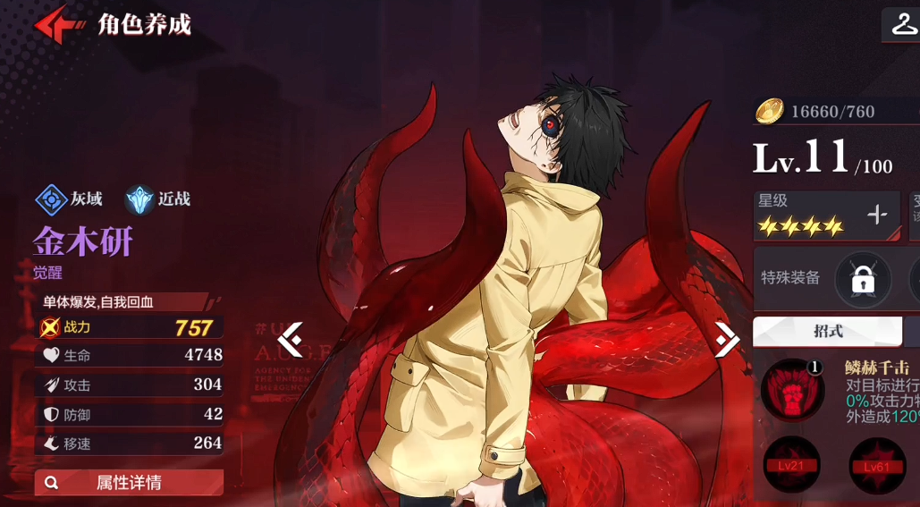 在通用阵容推荐方面,首推「喰种速攻体系」:核心输出为金木研,该角色可通过主线剧情稳定获取,兼具高爆发、可控变身机制与多段追击能力。辅助位建议优先配置具备攻击力加成、暴击率提升及行动条加速效果的角色,并注重激活与金木研相关的专属羁绊,从而最大化其单轮输出效率,确保前中期快速压低敌方血线,为后续关卡节省时间。