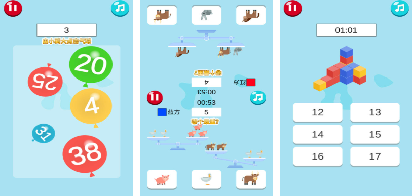 本作是宝宝巴士旗下专门普及数学知识的休闲作品,不仅加入了算术题和应用题等多样模块,还可以玩玩垃圾分类和辨别颜色等玩法,萌系视觉效果和互动解谜机制乐趣十足,多样数学解谜模块会让孩子爱上数学题,一系列专业知识点一一呈现点燃了孩子学习热情,各种有趣数学知识将在这款卡通游戏中完美呈现。