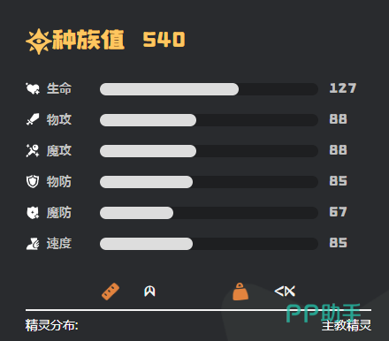 玩家在体验这一个宠物前,还需要了解宠物的种族值。种族值是540,生命值127,物理性攻击为88,魔法攻击为88,整体的表现还是很不错的。在搭配技能时可以选择气合拳。威力可以达到150,可以造成一个可靠的物理性伤害,尽管在命中时并不是100%,但是还是很有用。