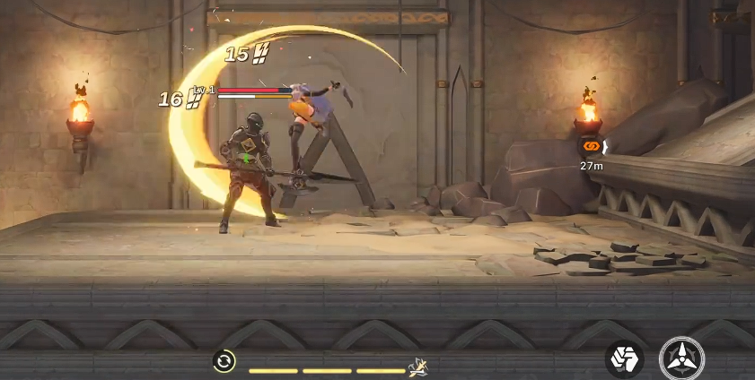 行至木桥边缘时,场景出现结构坍塌区域,此处引入首个进阶位移技能——二段跳。该机制需角色抵达平台边缘后触发引导事件,随后按跳跃键执行第二次起跳,实现跨越断口。判定条件明确:仅当角色处于特定位置并满足高度/距离阈值时方可激活。掌握该技能后,玩家可应对更多纵向地形变化。紧接着,系统进一步延伸操作维度,教学“冲锋跳”:需在角色腾空状态下长按冲刺键,触发向前突进效果。相比二段跳,冲锋跳对时机把控要求更高,但大幅提升了平台穿梭效率,是中后期探索的核心机动手段。