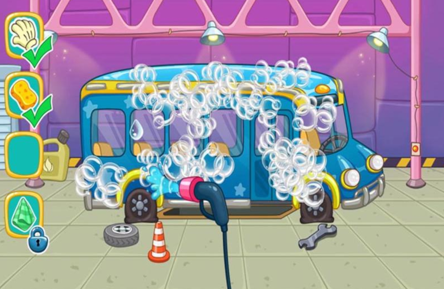 与孩子们一同来完成汽车的清洁与修理吧,这部游戏在关卡里为孩子们设计了多辆有着不同问题的汽车,需要孩子根据这些汽车所拥有的问题,用恰当的方法去完成修理,使汽车能焕然一新,也令孩子能在游玩时感受到动手解决问题所带来的快乐。在遇到麻烦的时候,游戏里还有不少好用的道具,能帮孩子找出问题,这些道具都能免费拿到。