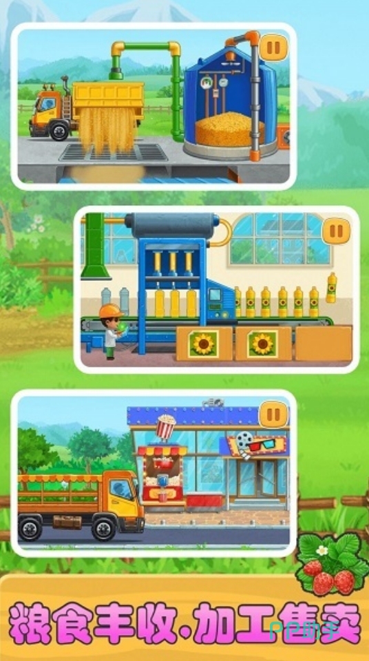 孩子将在这部游戏里成为农场主人,在自己的农场里进行播种和收获,用双手来亲自感受粮食丰收的喜悦。游戏在玩法上将常见的农活进行了简化,所有农活工作都只需轻点一下就能全部做完,并不需要孩子进行太多重复性的操作,就能完成对农场的打理。收获的农作物还能卖给游戏里的商店,买来更多有趣的农作物种子来进行耕种。