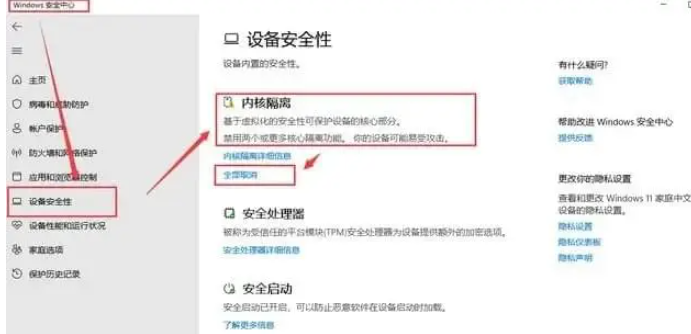 如果经常性遇到黑屏或者闪退的问题,就应该及时的关闭系统内核隔离功能。可以有效保护游戏系统,不会受到恶意程序的影响,但也有可能会导致游戏出现兼容性的问题,将这一个功能关闭就可以启动游戏。