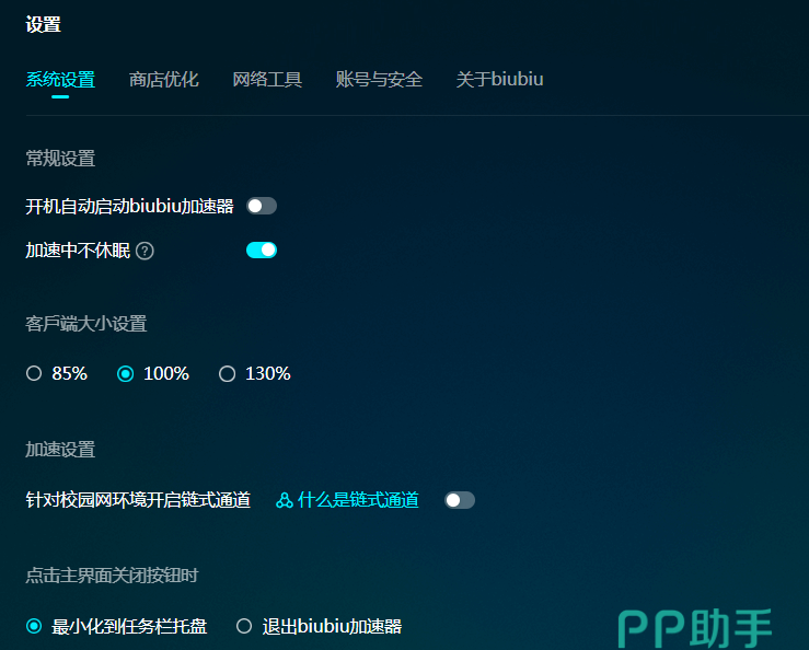 加速成功后,大家随时都能在页面查看网速,页面数值清晰显示延迟降低了多少、目前网速是多少,它还会同步上传网速度到游戏平台上面,缩短大家下载更新游戏的时间。不管运行多久,biubiu的效果始终如一,它还有不休眠模式,只要开启以后就算用户很长时间没有点击软件,它也不会断开加速。