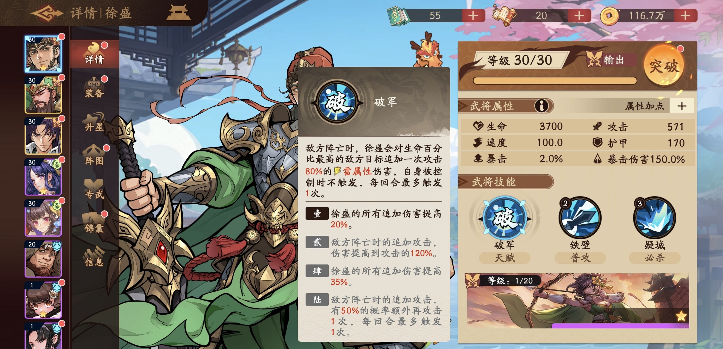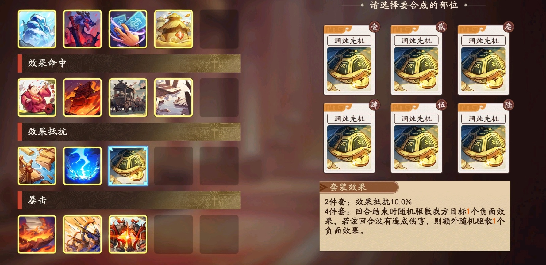 该武将在高命格养成后,可解锁治疗附带攻击效果的进阶机制,进一步强化其战场功能性。其必杀技治疗量可享受暴击率加成,实际生效时单次治疗数值可观,对主C持续作战能力形成有力支撑。在配装策略上,推荐优先选择“洞烛先机”四件套(提供友方负面状态清除)或“桃园结义”四件套(扩大单次治疗覆盖目标数),再补足两件生命属性装备以提升自身容错率。两类套装均能显著增强其辅助稳定性与团队容错空间。