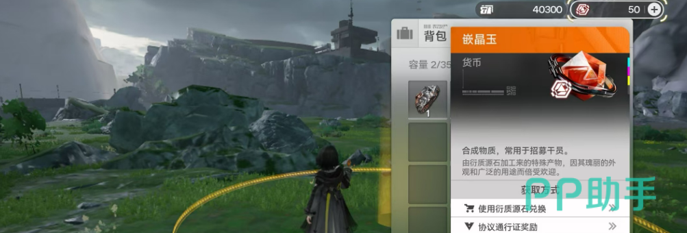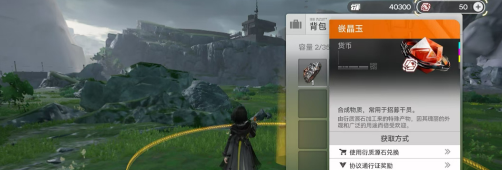 嵌晶玉由衍质源石精炼而成,具备高辨识度的晶体外观设计,在游戏内不可交易、不可合成,专用于【干员招募】界面抽卡。当前版本中,其战略价值与折金票并列,属于影响角色阵容构建上限的核心硬通货。