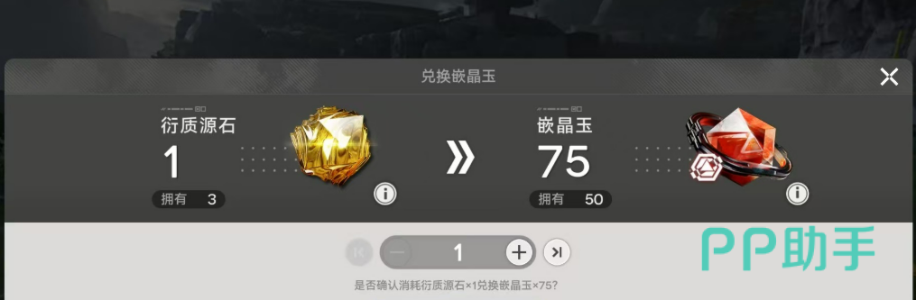 衍质源石兑换为最直接的转化方式:固定比例为1:75,即每消耗1个衍质源石可获得75个嵌晶玉。该途径无次数限制,但需权衡衍质源石在其他系统(如装置升级、协议强化)中的替代用途,建议在资源盈余或急需补强特定干员时启用。