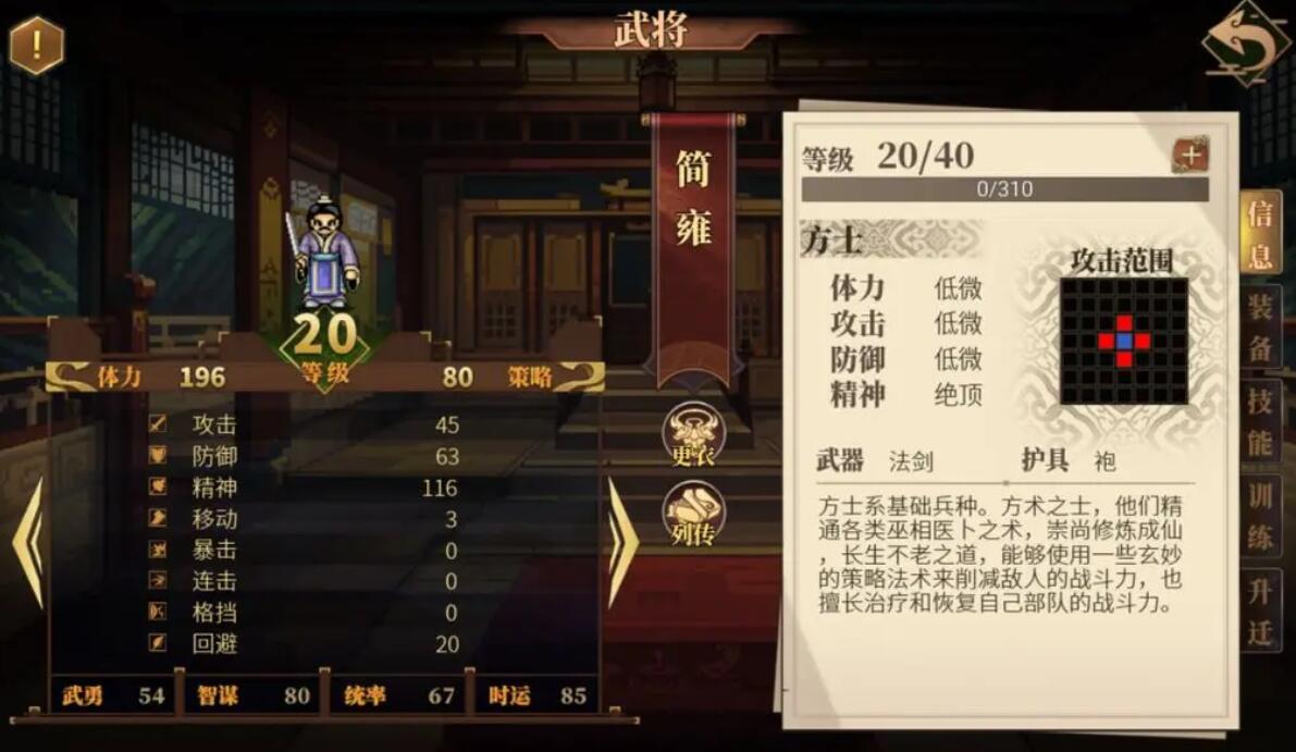 武将在升迁转职后,属性成长方向也是要调整。赵云转职山地骑兵后,移动力+2且山地闪避率提升15%,此时可适当减少体力投入,将节省的资源用于勇武强化至90点,配合涯角枪的穿透效果实现快速切入。夏侯博转职义士后解锁无双技能(格挡率100%),可将统率资源转移至勇武,利用双股剑反击特性提高输出效率。