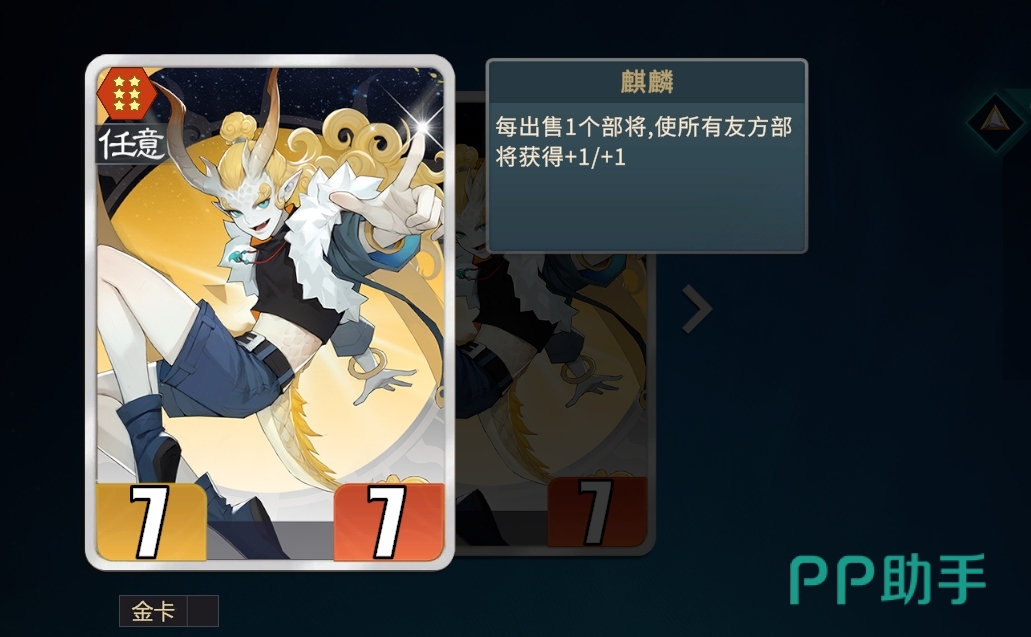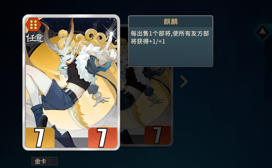 第二输出轴由麒麟与上官婉儿联合构建。上官婉儿作为鼓舞类辅助,每次释放技能可随机召唤一名唐阵营武将。若所召为非需求单位,玩家可即时出售,触发麒麟被动——出售操作将使全体友方单位获得+1攻击力与+1生命值的永久增益。该效果不仅与武则天的鼓舞形成双重叠乘,加速全队属性滚雪球,更使麒麟自身在后期成长为稳定输出支点,有效分担李白压力,提升阵容整体续航与容错能力。