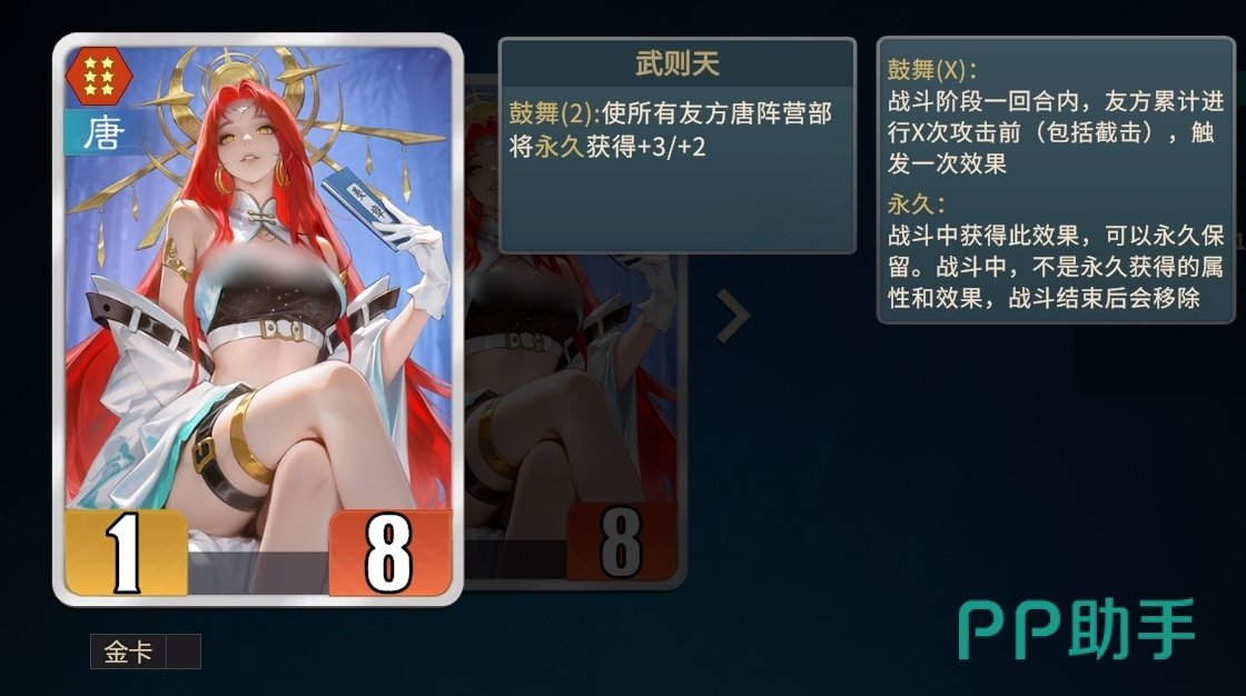 阵容的核心枢纽为武则天——她是全队鼓舞效果的唯一发动源与数值放大器。其技能可对全体友方唐阵营单位施加多层属性增益,且鼓舞效果可叠加、可重复触发。当场上存在两张及以上武则天时,鼓舞频率显著提升,使得李白、秦琼等主力单位的基础攻击、生命等关键数值在前中期即可实现质变式增长,为后续输出循环奠定坚实基础。