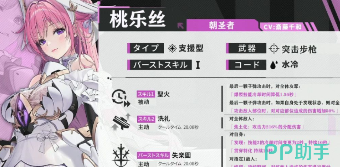 如果桃乐丝处于特定的状态,这时候还能够对全体的队员造成50.68%的伤害,持续的时间大概是5秒钟的样子。桃乐丝的主动技能是洗礼,一旦施展之后冷却时间是20秒,而这时候却可以给敌人造成216%的伤害。