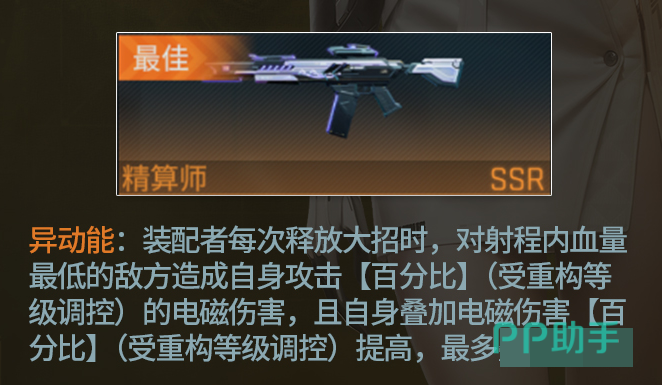 武器选择方面,主要是以配合米多利的叠加伤害的机制为主,这里优先选择精算师,其可在释放大招的时候,可对血量较低的对手施以电磁伤害,并叠加电磁伤害效果,完美配合了米多利的多段输出的节奏,尤其是在叠加满级后,所带来的伤害更是爆表,除了精算师,还有两个装备可以选择,一个用于残局收割的异动能,还有一个适合打持久战的步步为营。