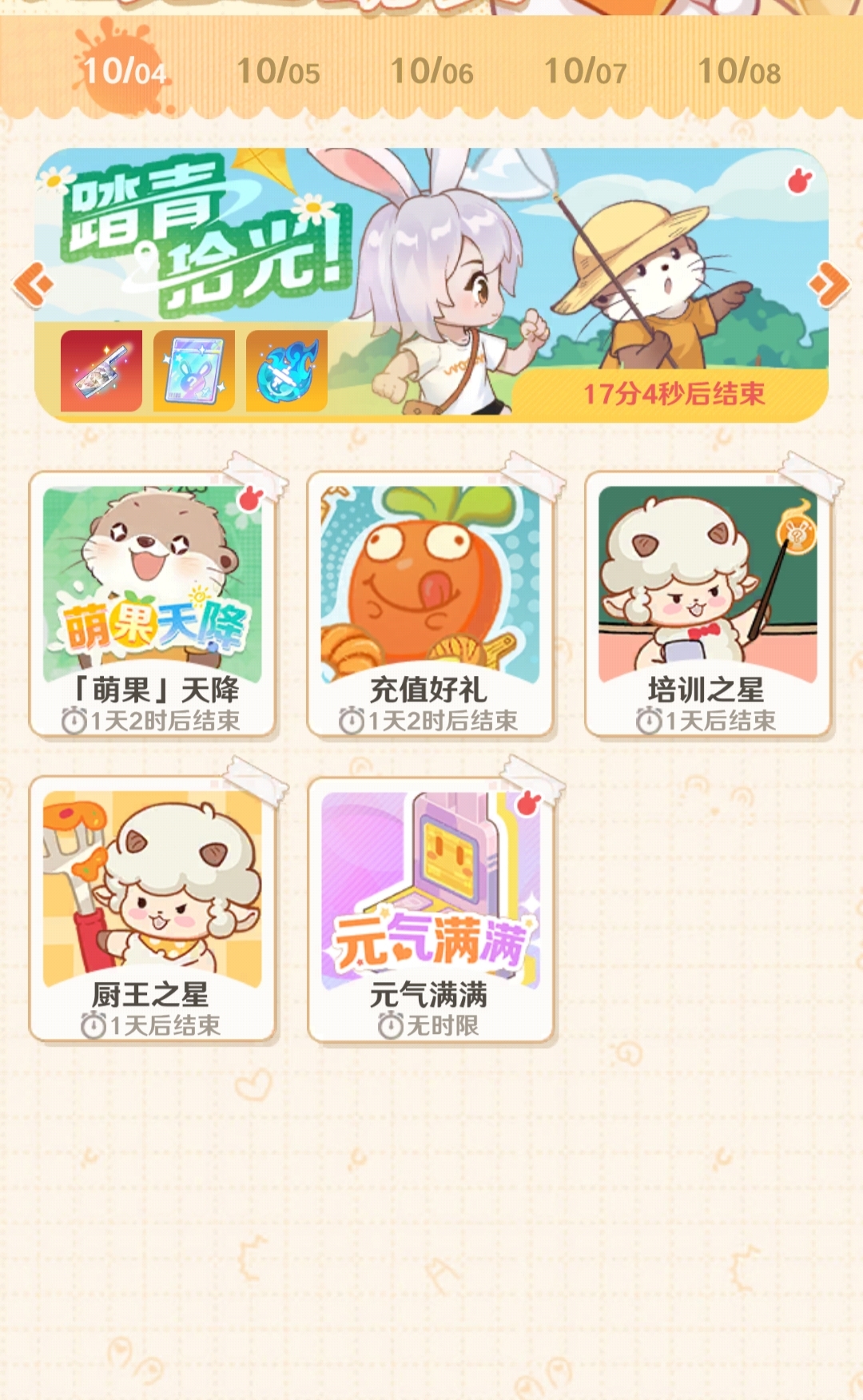 游戏定期开放冲榜活动、趣味小游戏及大型主题活动。其中冲榜奖励最为丰厚,有机会获得红色或金色品质厨具,建议保留挑战次数类道具,在活动后期集中发力冲刺排名。小游戏每日参与门槛低,但能稳定获取养成素材,务必坚持打卡。日常任务不可遗漏,不仅能积累经验,还能产出稀有资源。节庆期间推出的限定食谱与专属装饰也值得积极参与,即使无额外充值,长期积累同样可观。