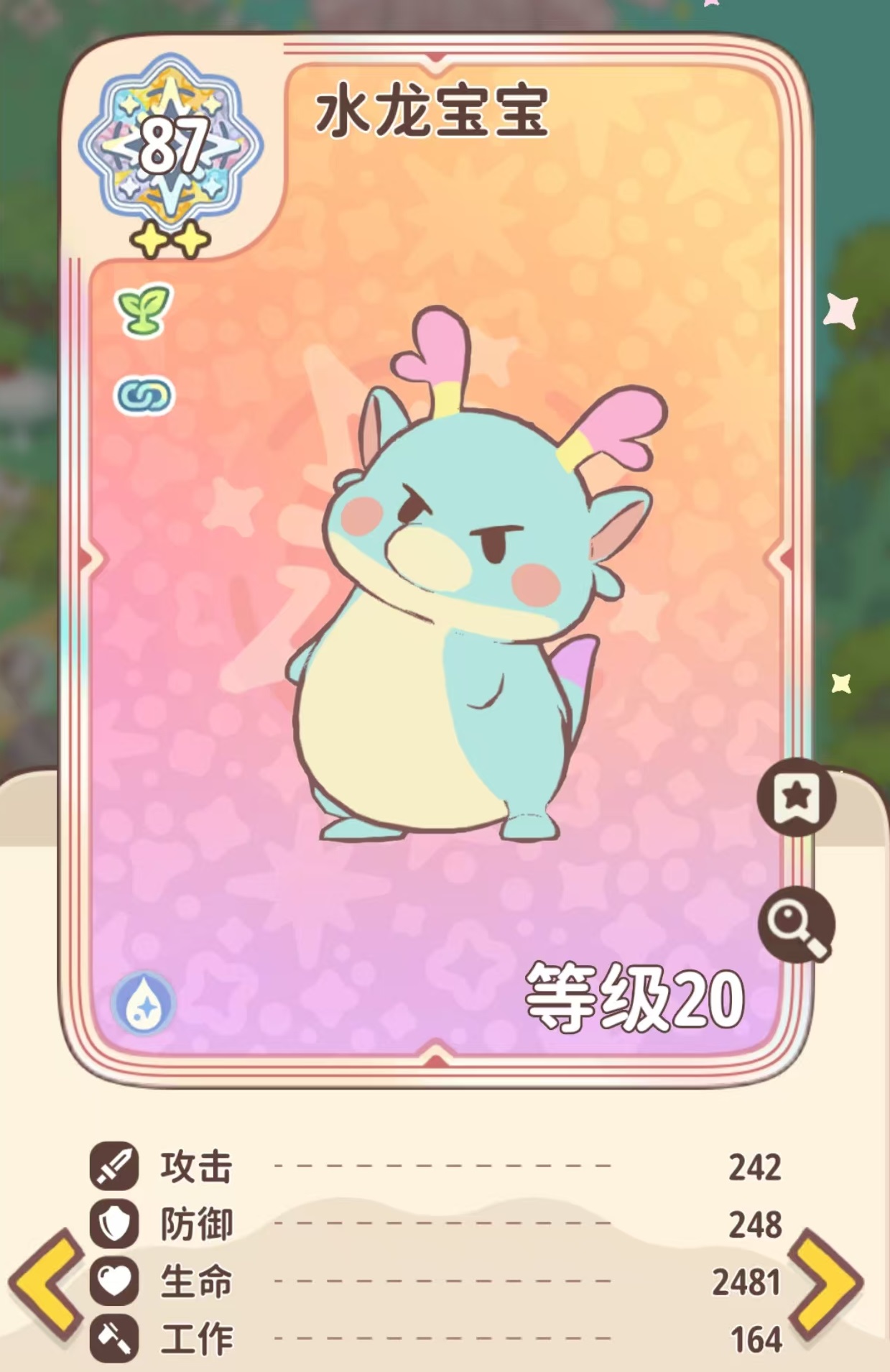 部分稀有或高阶噜咪需先通过战斗击败后方可捕获。游戏中收录大量噜咪个体,构成完整图鉴系统,点亮过程直观便捷。家园系统以浮空岛为载体,支持自由布局建筑与设施。不同噜咪可按功能类型分配至采集、加工、生产等岗位,设定后即可离线运行,持续产出资源用于家园扩建与个性化装饰。所有家具均支持360度旋转与精准摆放,满足高度自定义需求。