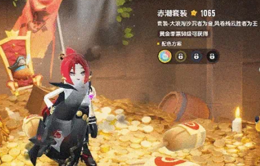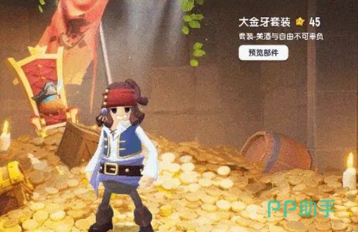 拥有50个染色剂之后就能获得赤潮煌威,赤潮余晖等等多种不同的皮肤,当然除了这些皮肤之外,在游戏里就是比较经典的大金牙套装,借助这个套装,玩家在游戏里能变身成为海盗,需要头部季票达到5级,脸部季票达到55级。